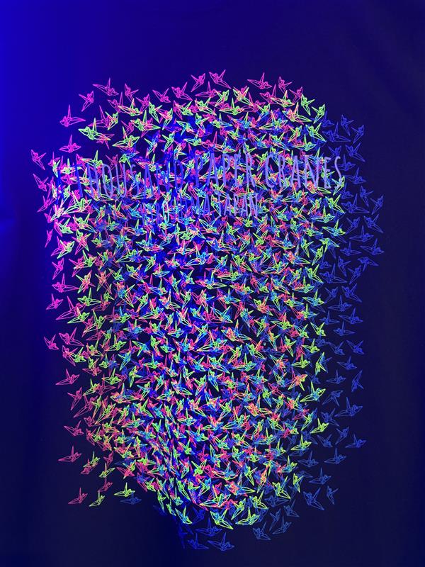 HIROSHIMAの”O”という文字から斜めに【ORIZURU】と隠れ文字が入っています。